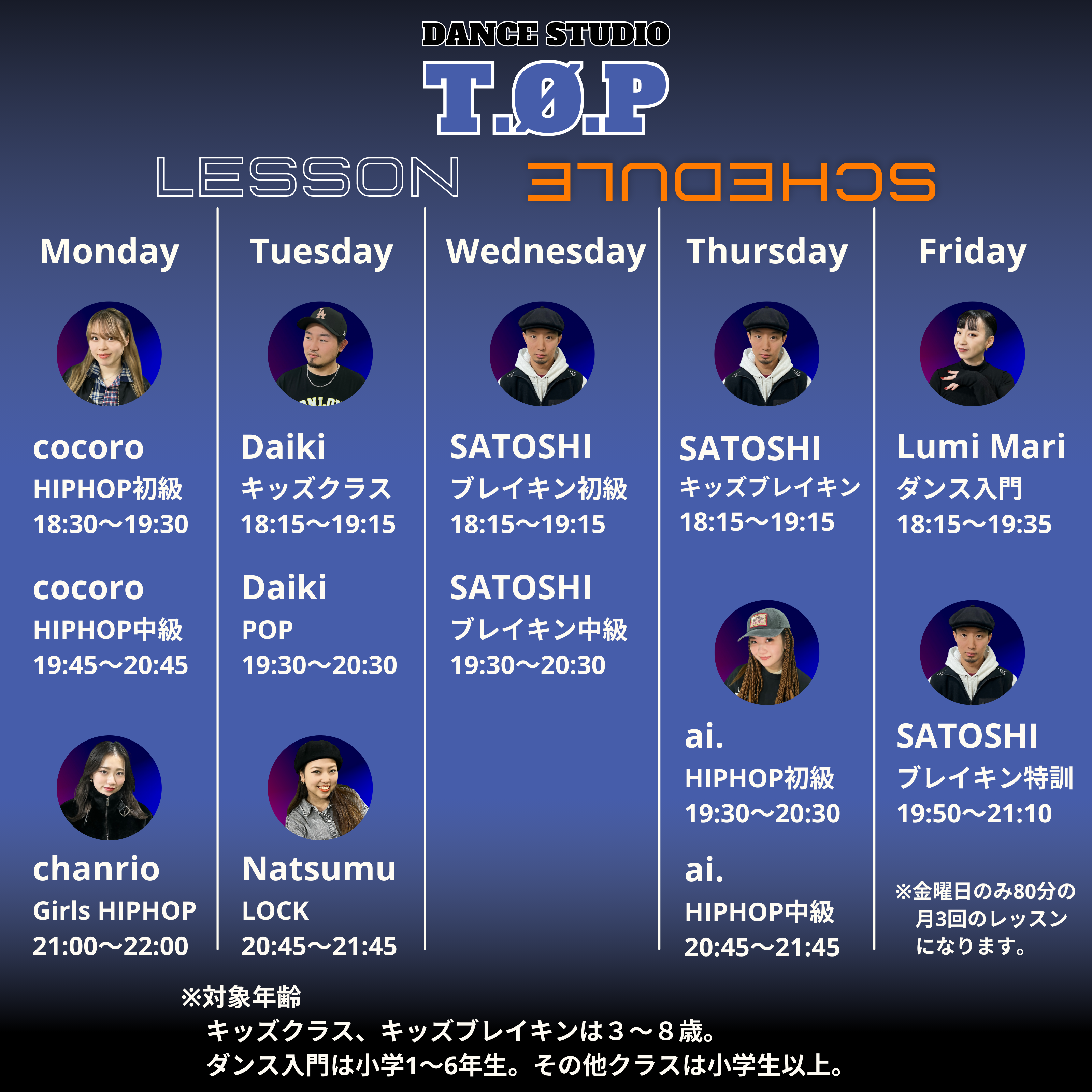 ※年齢制限の書いてないクラスは小学生~大人まで受講できます。